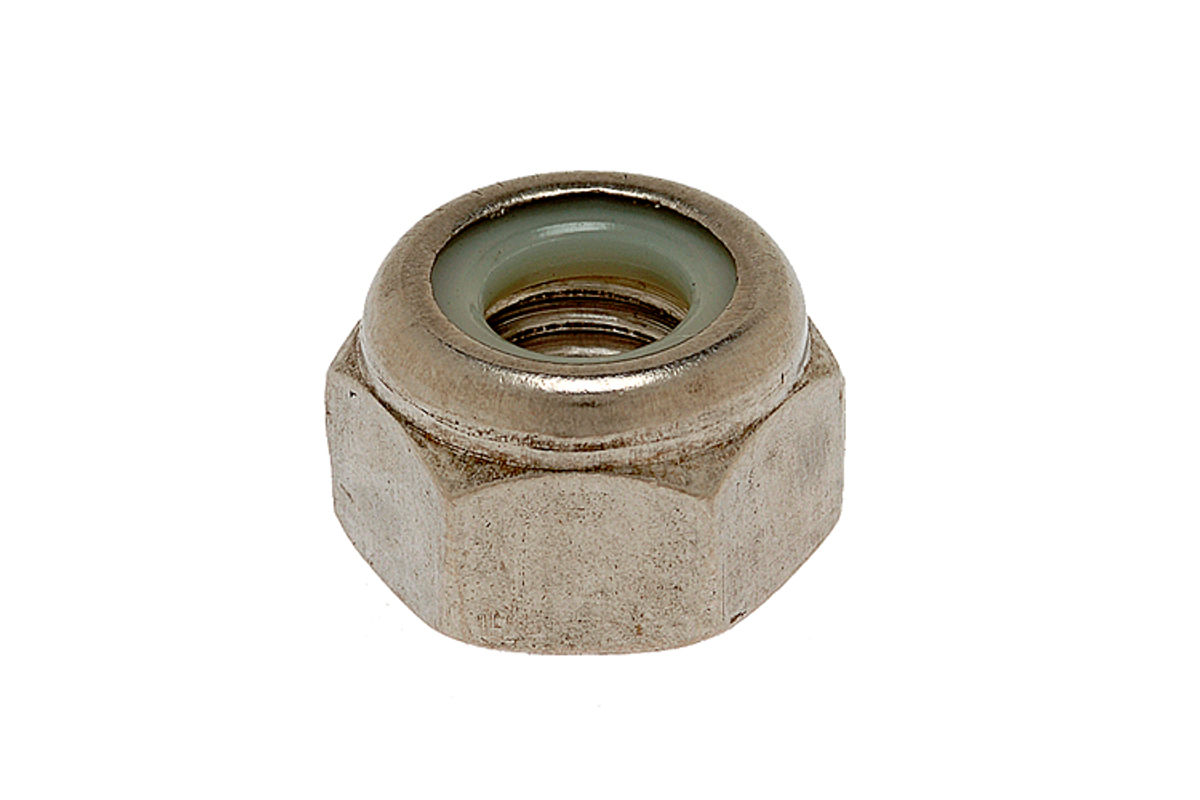 ゆるみ止め用の六角ナットで、上部に付いたナイロン製のリングが、ボルトなどのねじ部に押し付けられ摩擦が生じてゆるみ止め効果を発揮します。