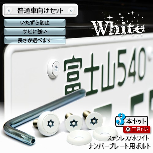 ナンバープレート用ボルト ピン・トルクスサラ ステンレス(ホワイト) 3本 + 工具付セット