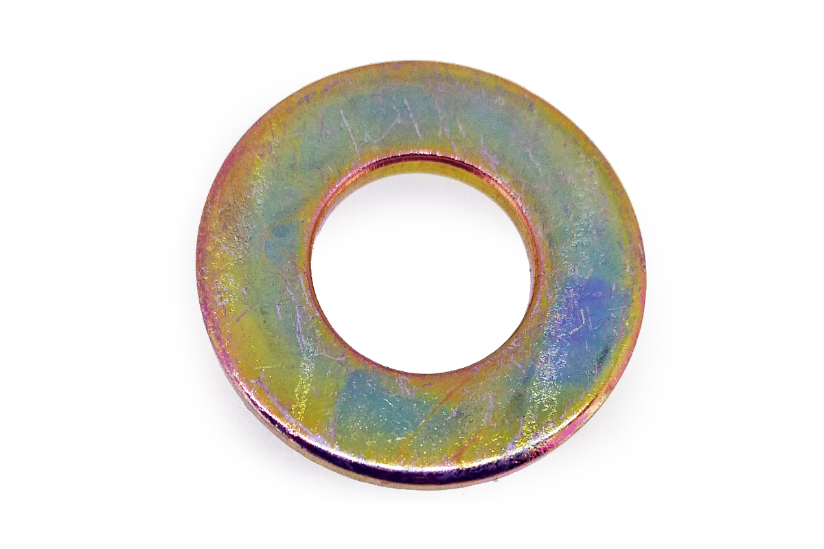 ボルトやナットを締結する際に、ボルトやナットの座面と相手材の間に入れる 丸いワッシャー です。 「平ワッシャー」、「平座金」とも呼び、締結時における相手材への損傷や陥没を防止します。