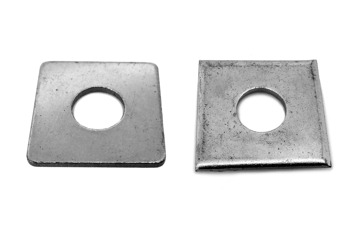 ボルトやナットを締結する際に、ボルトやナットの座面と相手材の間に入れる正方形の四角い形状のワッシャーで、「角座金」とも呼びます。