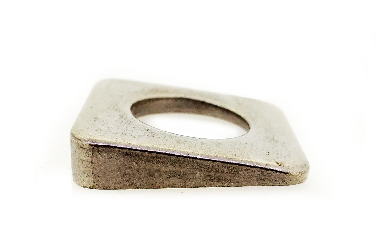 ボルトやナットと相手材の間に入れる四角い形状で、片側に傾斜しているワッシャーです。