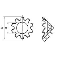 丸いワッシャーの外側に、歯車のように凸凹した歯が付き、サラ形状に立ち上がっている形状です。 「歯付き座金」、「菊座金」 とも呼びます。