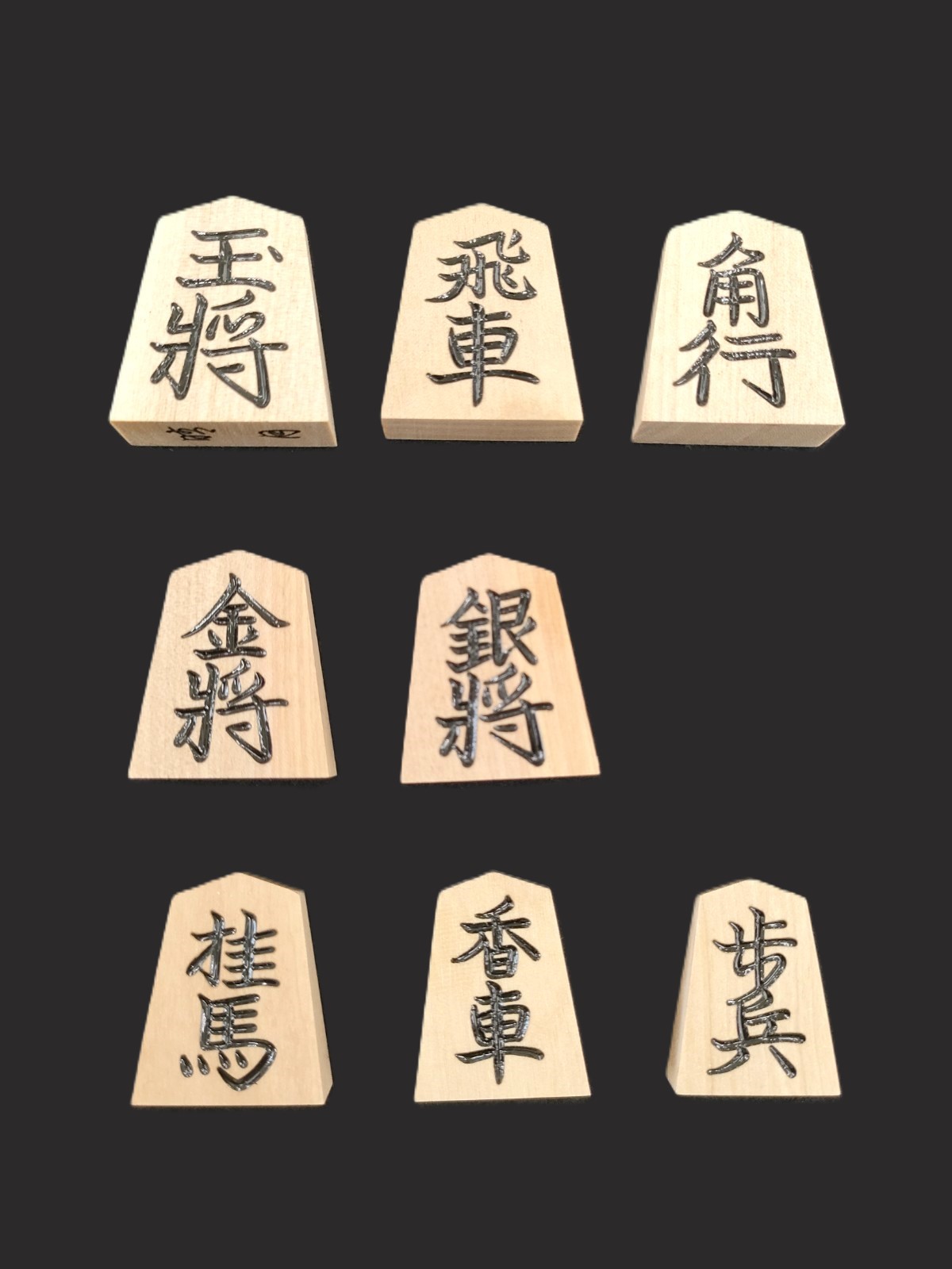 将棋駒 斧折上彫 彫駒 二字駒 裏黒 おのおれ材