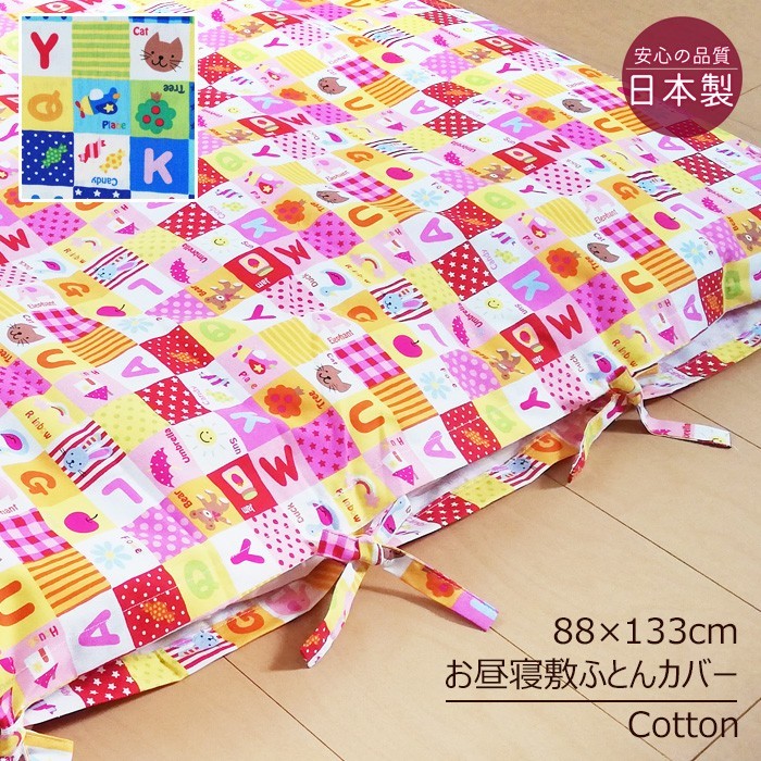 日本製 綿100% 保育園 お昼寝布団 敷き布団カバー 3カ所共布ヒモ式 88×133cm アルファベットおべんきょう柄 敷きふとんカバー ひもタイプ M便1 TMN0057T
