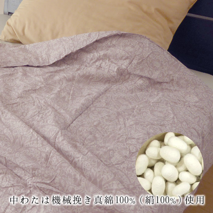 中わたシルク100%、側生地はやわらかなレーヨン生地。