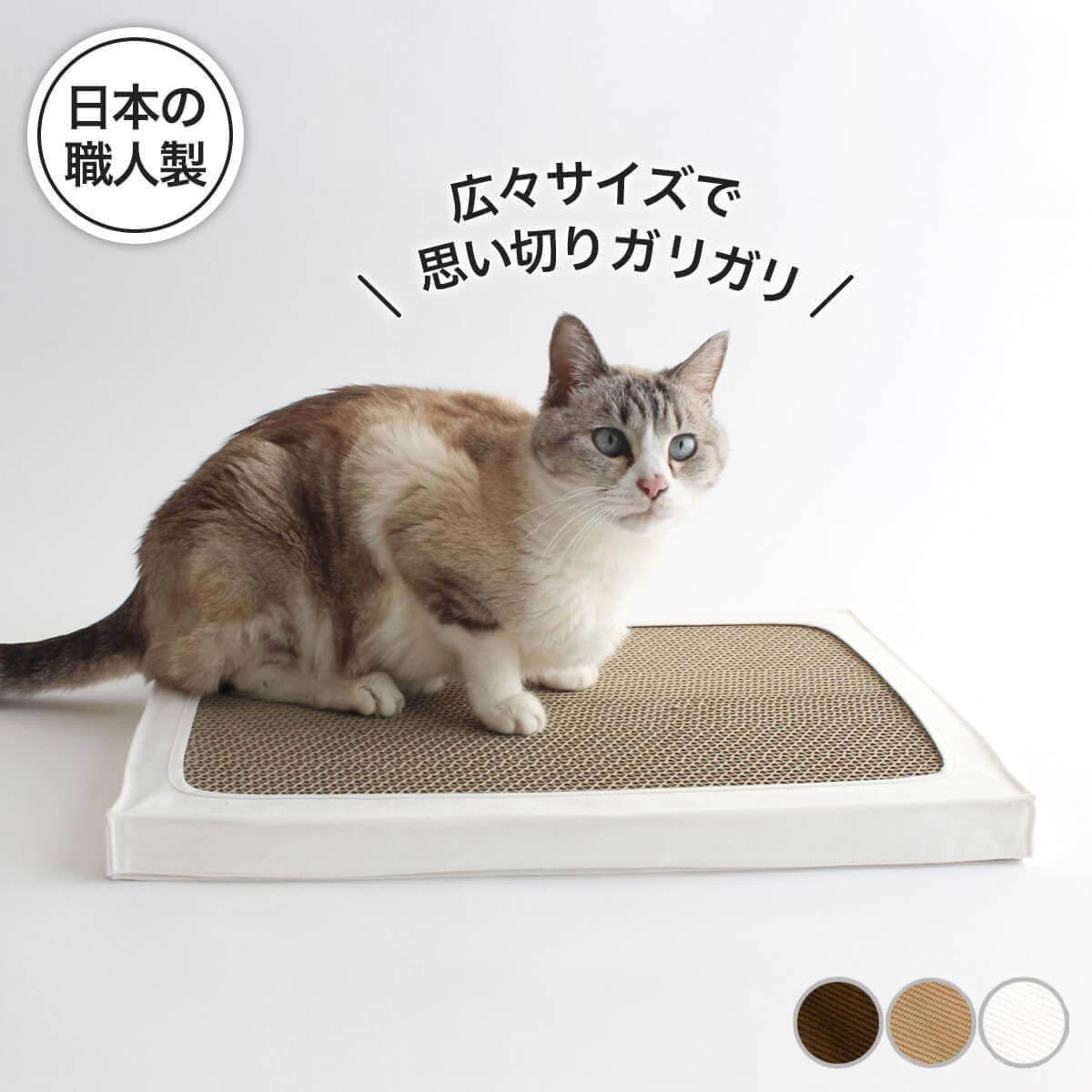 | 機能 | 一般的な爪とぎダンボールよりも硬い素材を採用。独立型の2枚構成で天地左右ギリギリまで使うことが出来き経済的です。 |