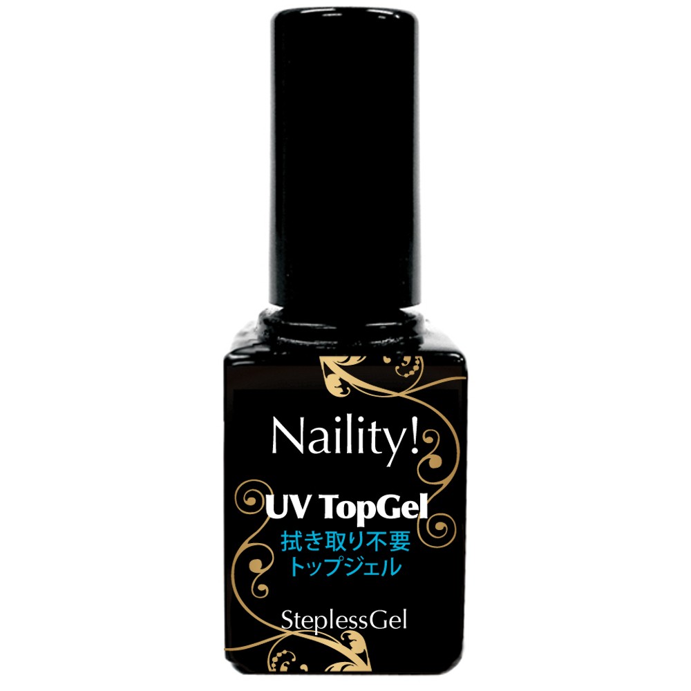 Naility! ステップレスジェル ベースジェルを塗りライトで照射します。さらに長持ちさせたい方はサンディングをしNaility!プレフィッター塗布後にベースジェルを塗って下さい。カラージェルやアートを施しライトで照射します。仕上げにNaility! ステップレスジェル トップジェルを塗りライトで照射し完成です。未硬化が出ないノンワイプジェルなので拭き取りの必要がありません。