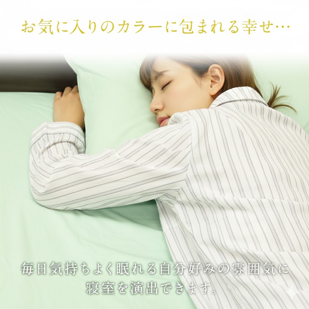 各種カバー等で同じ カラー を取り揃えておりますので、自分好みのカラーに寝室を演出できます。