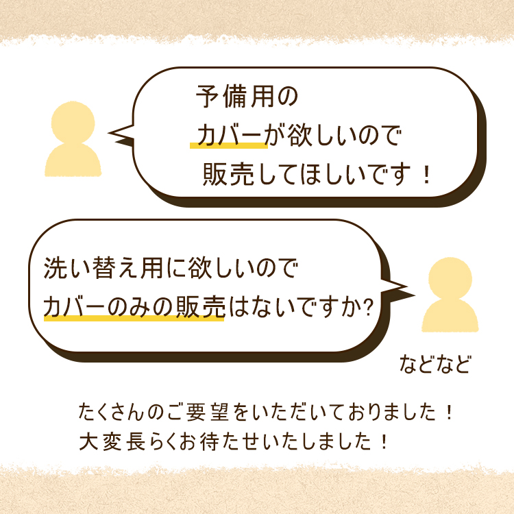 | 【洗い替えにおすすめ】 洗い替えにもう一枚欲しい。。。色違いでカバーがのみの販売希望です等、カバーのみの販売ご希望のお声とたくさんいただいておりました。洗い替えや、色違いで雰囲気を変えたり、予備のカバーにおすすめです |