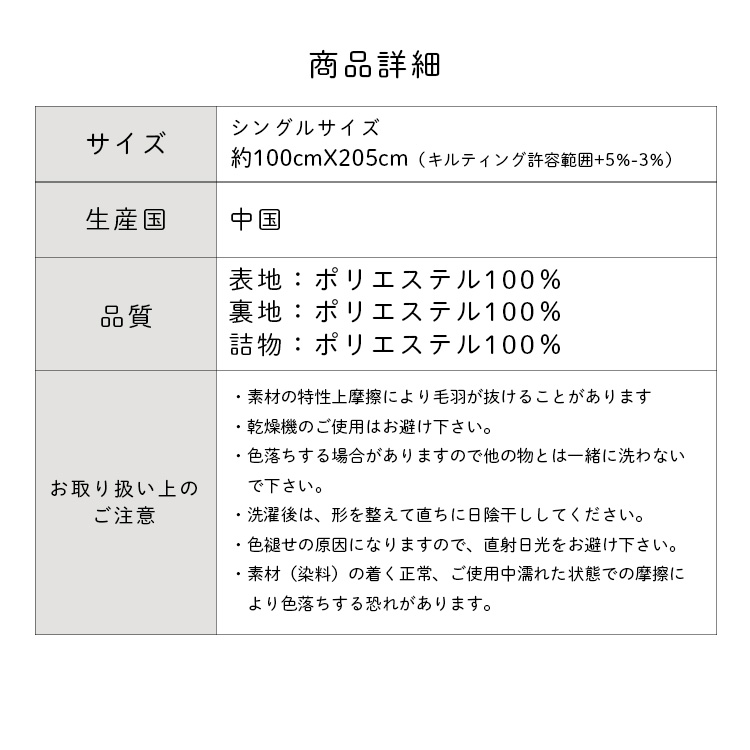 シングルサイズ:約 100X205 cm
