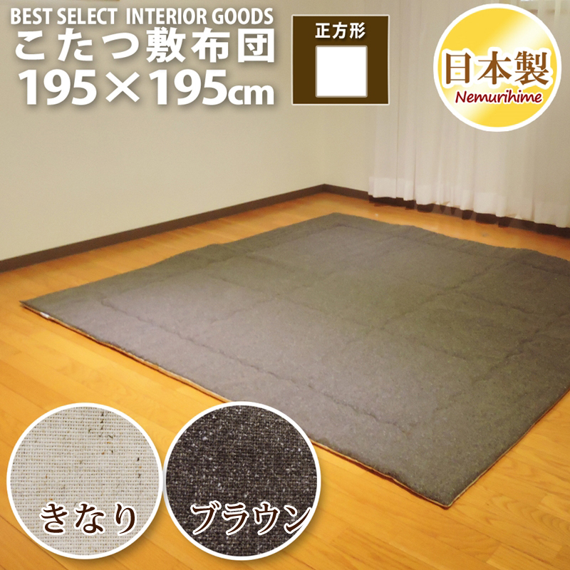 | ■サイズ 195cm×195cm ■生地 ネップ地:アクリル40% ・ポリエステル30%・綿30% ■中材 ポリエステル固綿芯20mm 2.0kg ■原産国 日本製 |