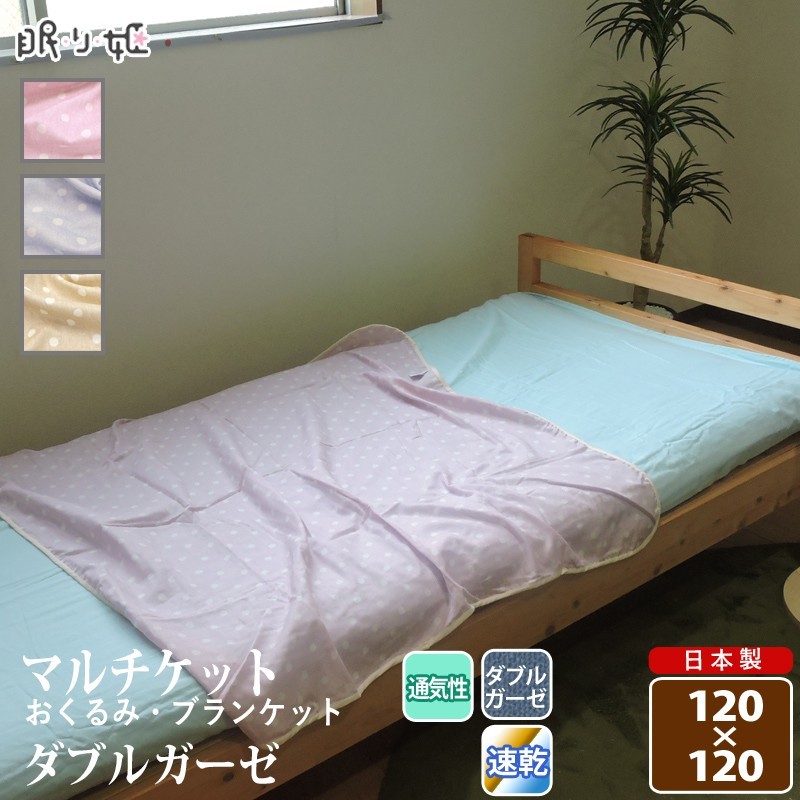 | 【サイズ】 120×120cm 【素 材】 綿100% 二重(ダブル)ガーゼ(190本) ノンホルマリン 寸法変化率:縦-3% 横-4.8% 【原産国】日本製 (眠り姫で縫製・加工) 【備 考】三巻ステッチ |
