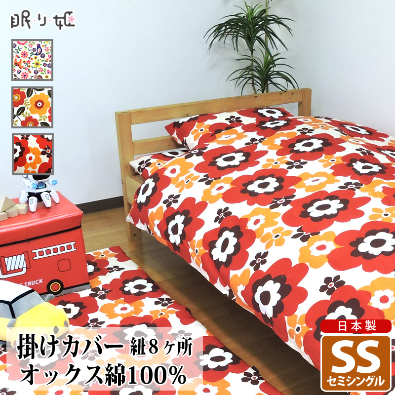 | お部屋がパッと明るくなるかわいいテイストの柄生地です。 お布団がずれにくい8ヶ所ファスナー付♪ 肌に優しい、綿100%のしっかりした生地を使用し長くご使用いただけます。 毎日触れる物だからこそ清潔で安心な物がいい!⇒洗濯機で丸洗いOK! ご注文確認後、眠り姫にて生地の裁断・縫製を行っております。 |