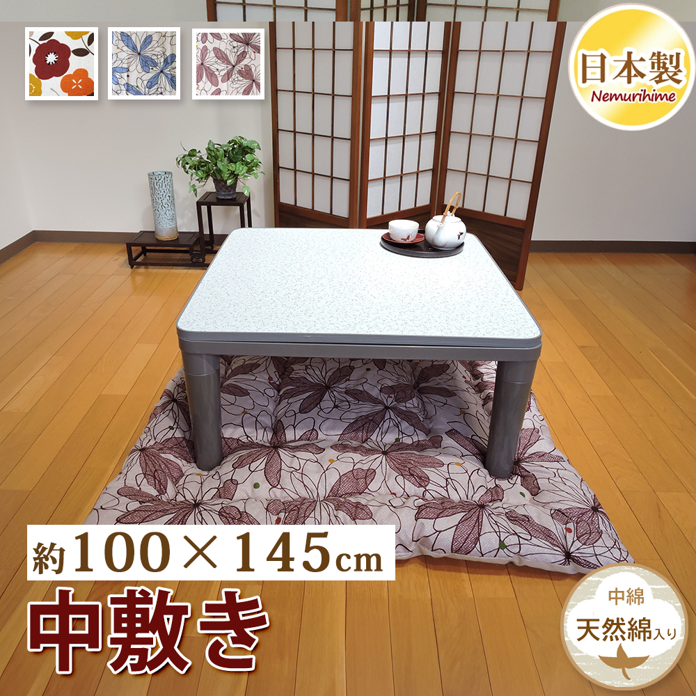 | ・綿100%生地が静電気を防ぎ、毛玉や汚れをつきにくくします。 ・中綿は、良質の米綿にポリエステルを混ぜています。 ・小スペース用こたつ敷布団だけでなく、中綿米綿入なので、子供用、お昼寝用敷布団等、いろいろな使い方ができ重宝です。 ・プリントも加工もすべて日本で行っています。 ・お手入れ:コインランドリーでの洗濯はお避け下さい。専門の業者での洗濯をおすすめしています。 | ||