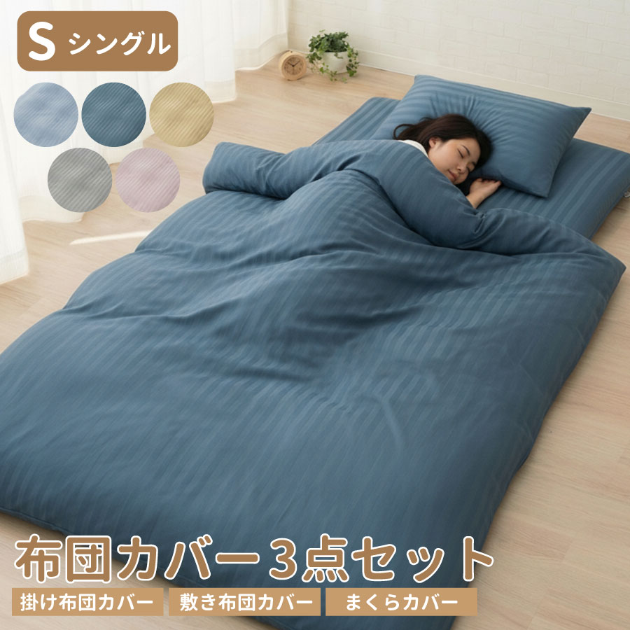 布団カバー 3点セット シングル ポリエステル100% 全開ファスナー 6ヶ所ひも付き 洗える 速乾 軽量 おしゃれ ストライプ 来客用 新生活 オールシーズン