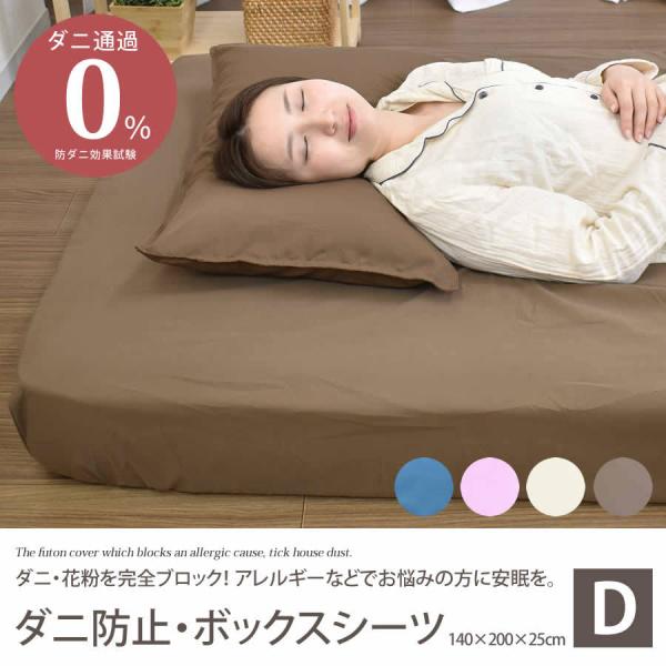 ダニ防止 ボックスシーツカバー ダブル D 140×200×25cm ダニを通さない生地 高密度 無地