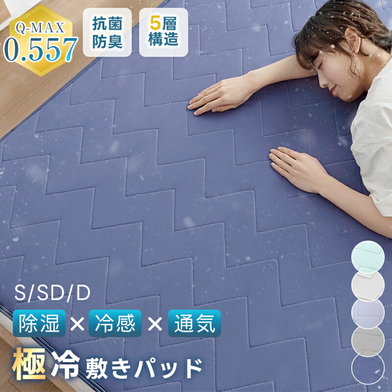 【300円クーポン】敷きパッド 除湿 瞬時冷却 夏 シングル リバーシブル 接触冷感 Q-MAX0.557 ひんやり 5層構造 抗菌防臭 防ダニ 吸水速乾 洗える 除湿シート
