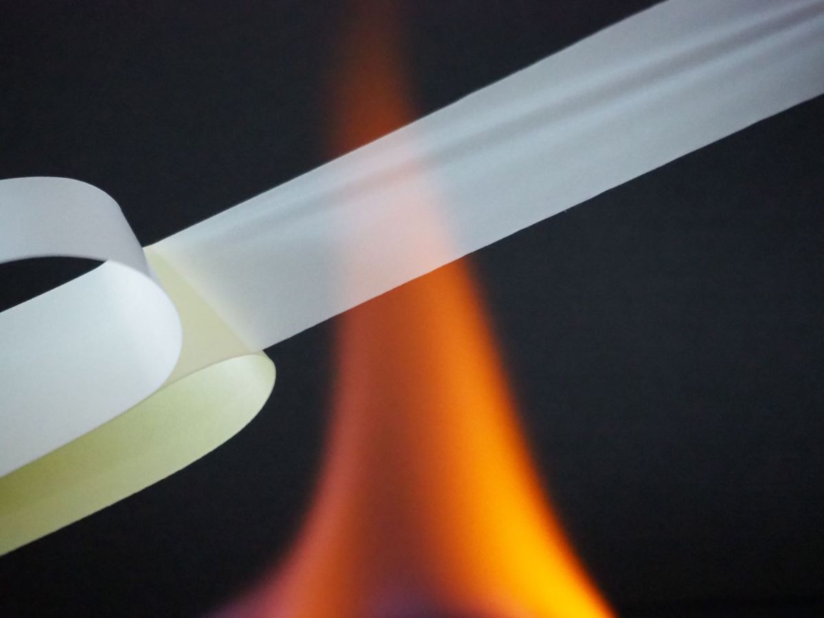 不織布を基材として、その両面に低VOCでノンハロゲンタイプの粘着剤が塗布された難燃性の両面粘着テープです。