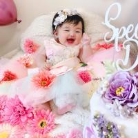 お花モチーフは、生まれてすぐのベビーちゃんの前頭部辺りを覆うサイズです。