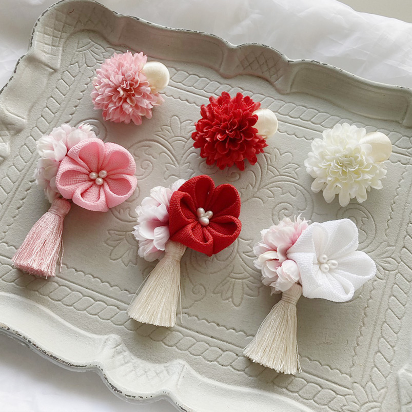 浴衣 ベビー 和 つまみ細工 2点セット つや玉 一越ちりめんつまみ細工とぽんぽんマムの和飾り ベビーヘアバンド ヘアクリップ ミニコームから選べる