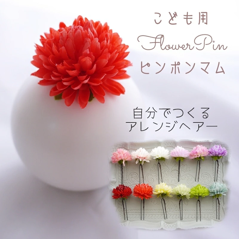 ポピーレッド・マム・こども用・1本/お好きなフラワーピックを合わせておしゃれな和洋ヘアが作れます。かんざしかUピンを選べるヘッドドレス。こども用Uピンは玉付きで安全です。