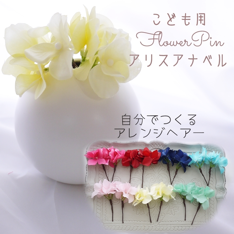 おしゃれ キッズ 髪飾り フワラーヘアピン ヘッドドレス 曲がるかんざしタイプ 子ども 753 ヘアド 女の子 日本製 袴 浴衣 lemon アリスアナベル(紫陽花)