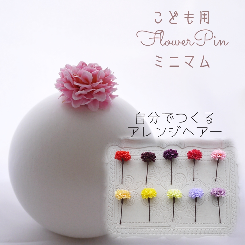 和装 子ども 髪飾り かわいい blossom ミニマム(菊) フワラーヘアピン ヘッドドレス かんざしタイプのヘアアクセサリー 7歳 小学生 キッズ 可愛い 和装 ピンク