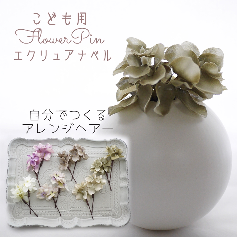 子ども 日本製 フラワー かんざし 七五三 洋風着物 髪飾り ヘッドドレス カーキ 花 女の子 袴 和 ヘアピン 浴衣 おしゃれ khaki エクリュアナベル 紫陽花