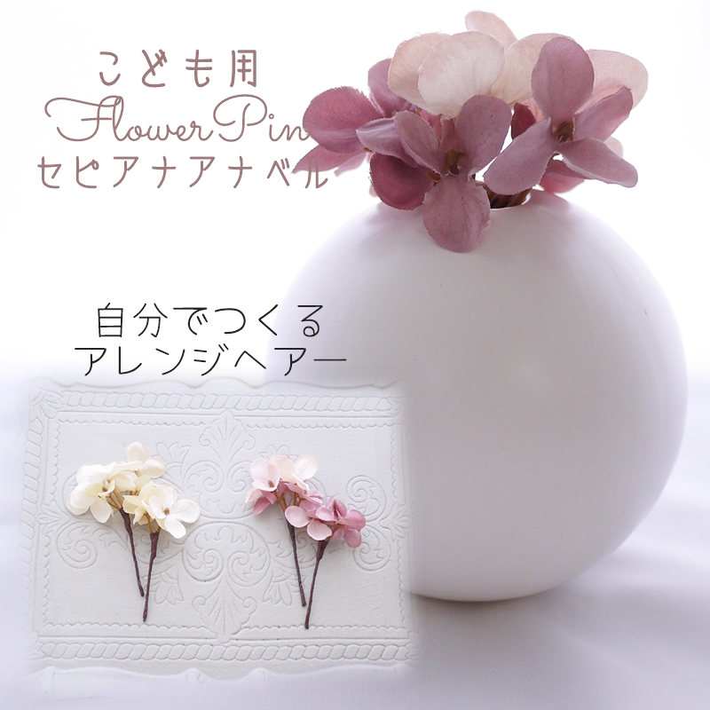ピンクモーブ・アジサイ・こども用・2本/お好きなフラワーピックを合わせておしゃれな和洋ヘアが作れます。かんざしタイプヘッドドレス。ドレスや洋風着物にもおすすめです。