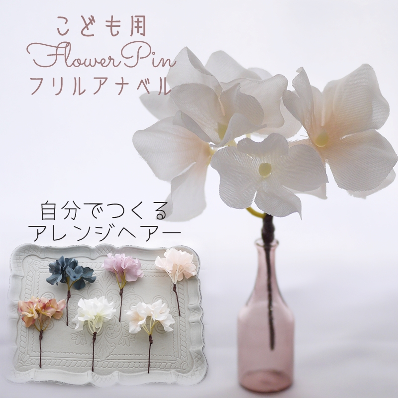 ピンクベージュ・アジサイ・こども用・1本/お好きなフラワーピックを合わせておしゃれな和洋ヘアが作れます。かんざしタイプヘッドドレス。ドレスや洋風着物にもおすすめです。
