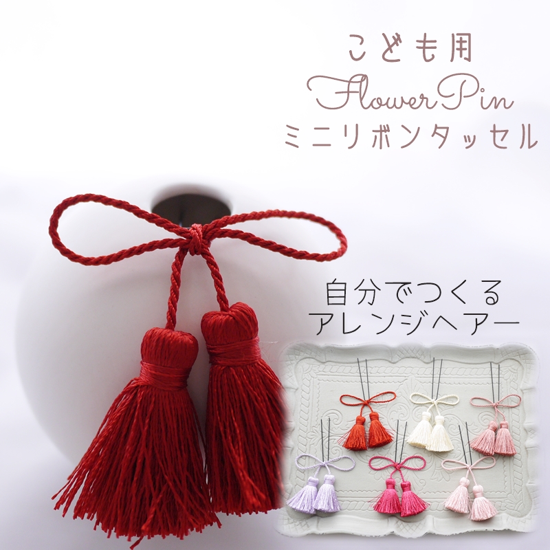 くれない・タッセル・こども用・1本/お好きなフラワーピックを合わせておしゃれな和洋ヘアが作れます。かんざしかUピンを選べるヘッドドレス。こども用Uピンは玉付きで安全です。