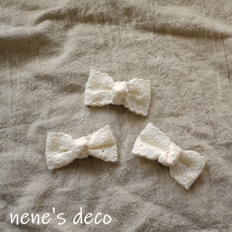 生成りのコットンレースをリボンに結びヘアピンにしました。
