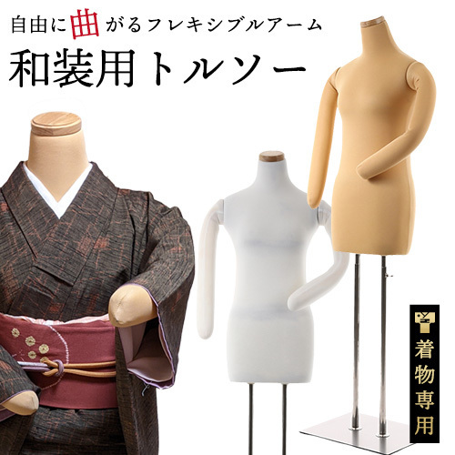 商品名:着物 着付け 練習用ボディ 腕つき和装用トルソー マネキン フレキシブルアーム 白 肌色 ホワイト ベージュ