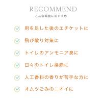 用を足した後のエチケットに、飛び散り対策に、トイレのアンモニア臭に、日々のトイレ掃除に、人工香料の香りが苦手な方に、お子様がいるご家庭に、オムツごみのニオイにも。忙しい毎日でも、手軽にサッと消臭!