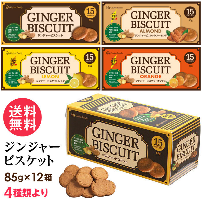 ジンジャービスケット 85g(15枚入) 12箱 4種類より プレーン アーモンド レモン オレンジ 送料無料