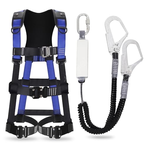 [lifning] 安全帯 フルハーネス ハーネス フルハーネス安全帯 新規格 セット 墜落制止用器具 サイズ調整可能 (ブラックブルー)