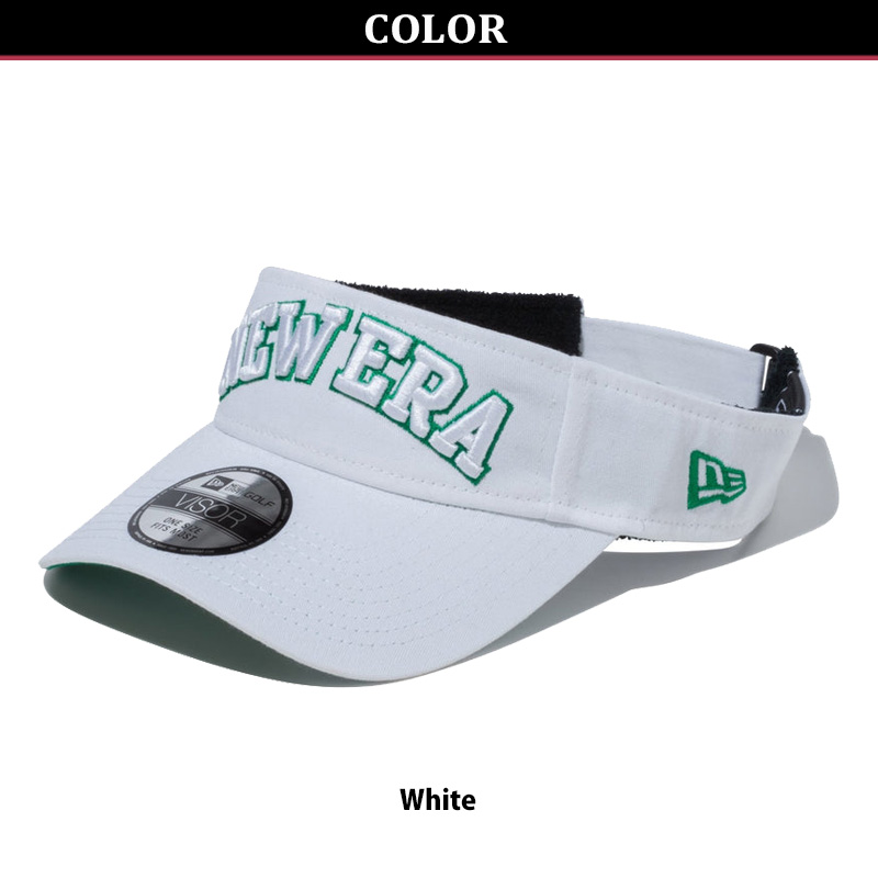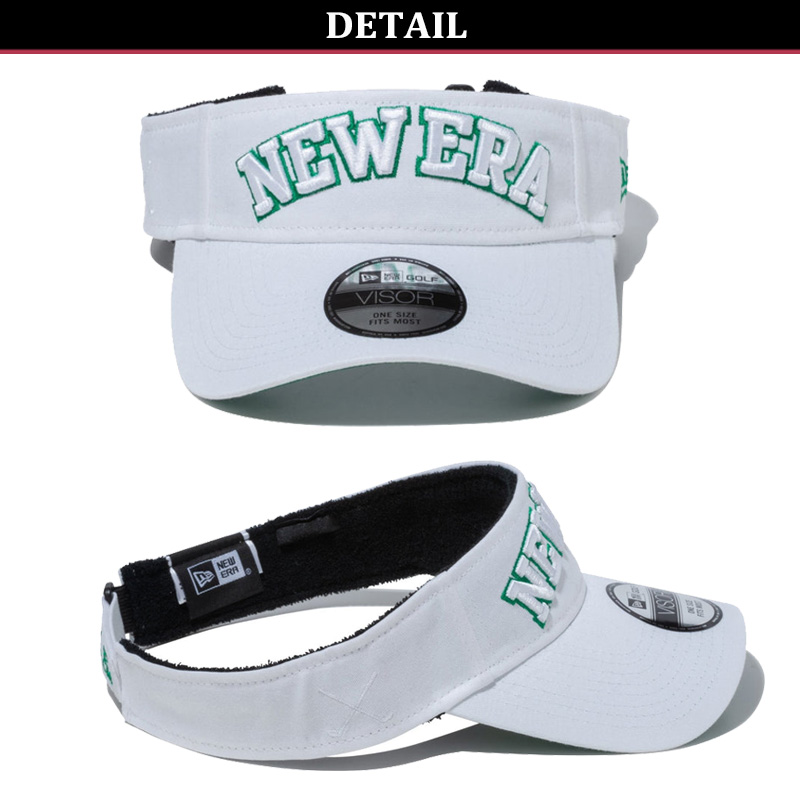 | ニューエラの【ゴルフライン】。 伸縮性のある7.5オンスのコットンツイル生地を使用した、手洗い可能なゴルフ用サンバイザー。フロントに厚盛刺繍のブランドネームをアーチ状にレイアウトしたベーシックなデザイン。 |