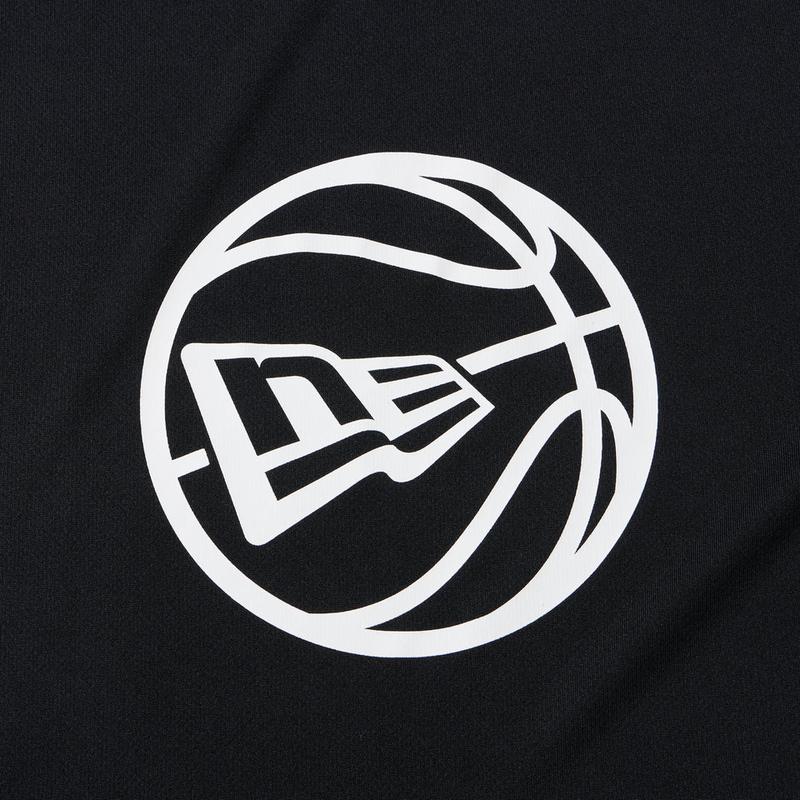 ニューエラのバスケットボール プラクティス 半袖テックTシャツ。トレーニングに最適な吸汗速乾メッシュ素材を採用した、機能美を備えたスポーツトップス。