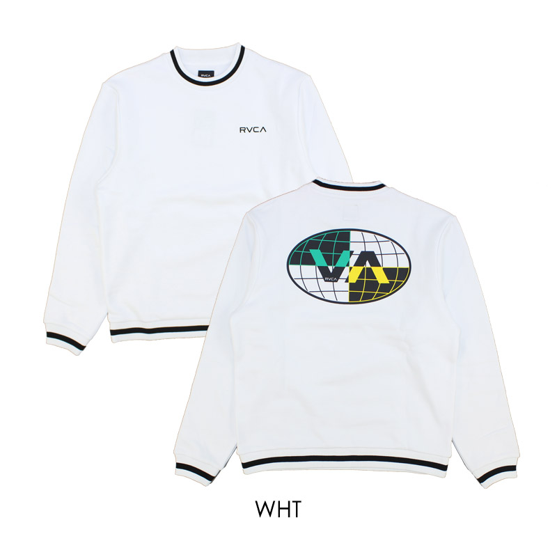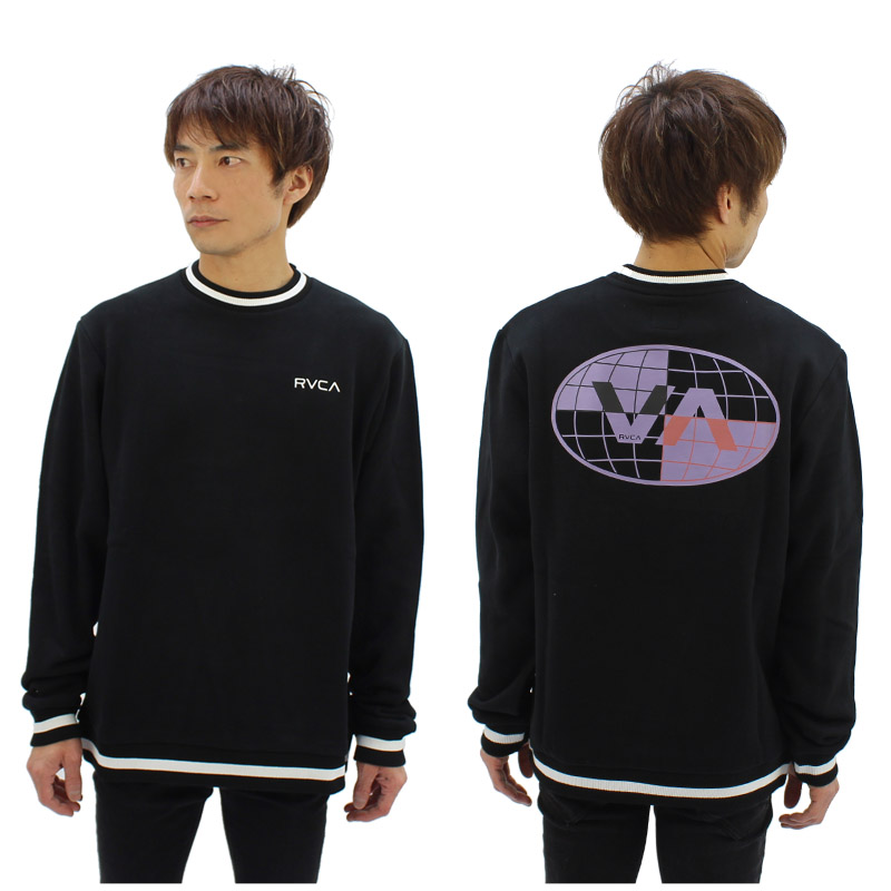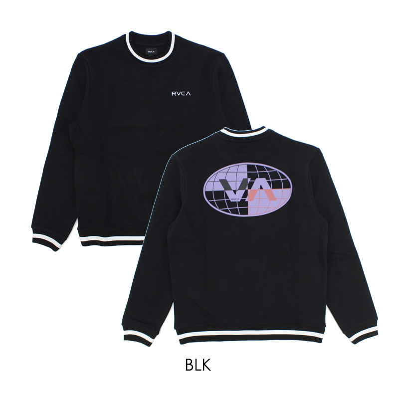 襟、袖、裾のリブにラインが入ったスポーティーなクルーネックスウェット。フロントにブランドネームのワンポイント、背面にグローバルグラフィックをレイアウトしたアイテム。。肌触りの良い裏起毛仕様。 |