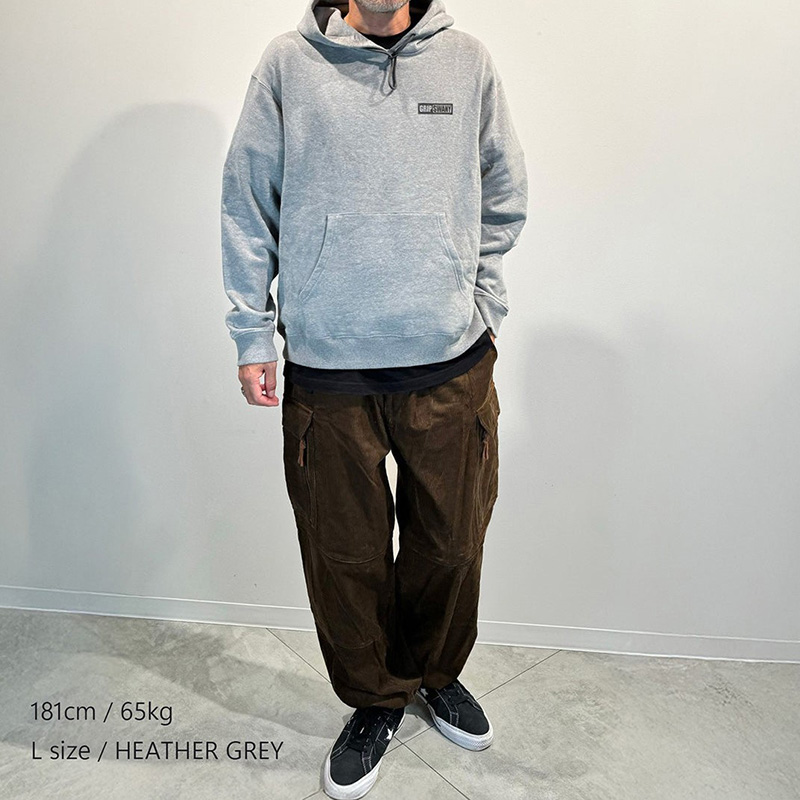 柔らかく膨らみのある風合いが特徴のアズマ裏毛機を使用したスウェットフーディ。アウターのインナーにも重宝し、男女問わず人気の一枚。