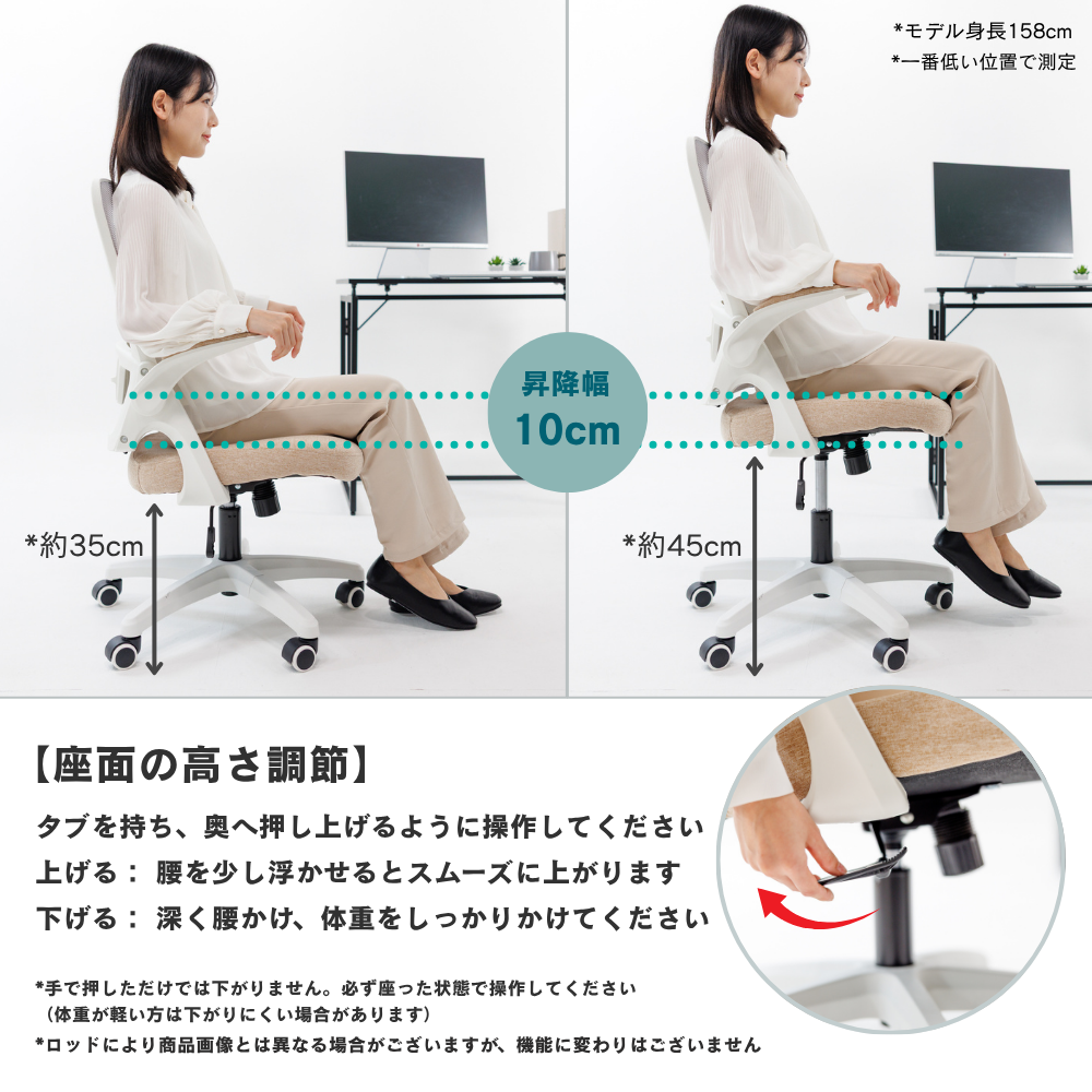 ・座面下35cm〜45cmで小柄な方にも、高身長の方にも