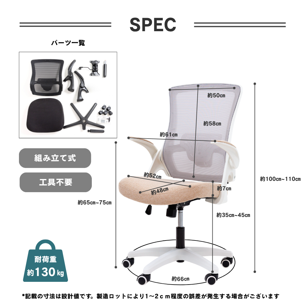 ・背もたれ:約幅50〜61 cm×高さ58cm