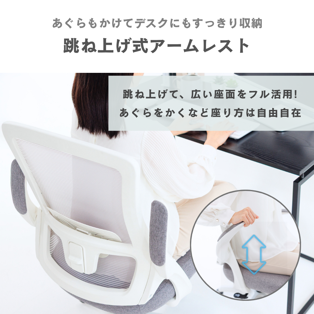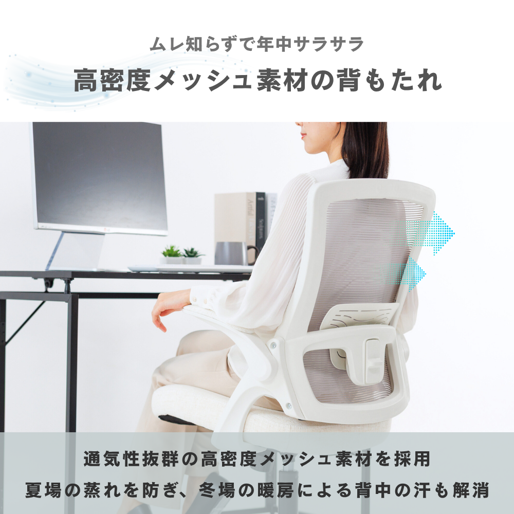 【セール】オフィスチェア 肘 跳ね上げ メッシュ デスクチェア 学習 勉強椅子 テレワーク キャスター 腰痛 ワークチェア 白 オフィスチェアー