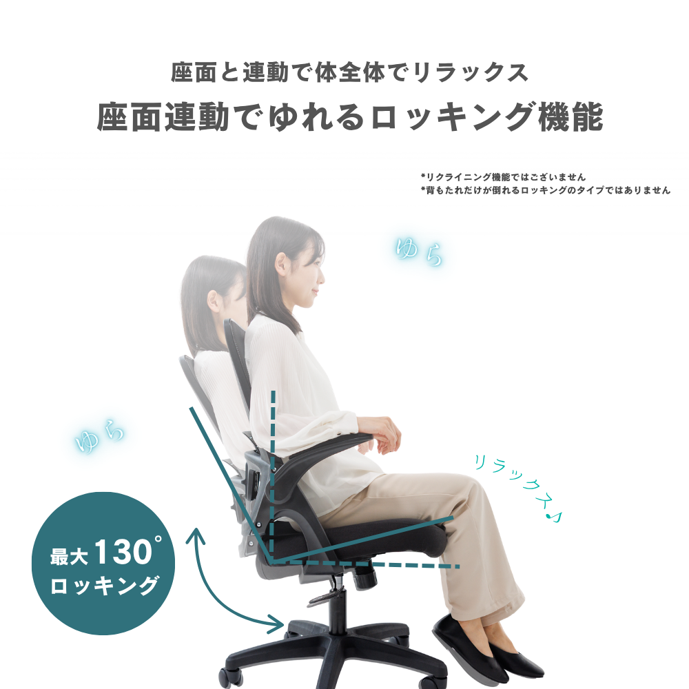 ・最大約130度ロッキング