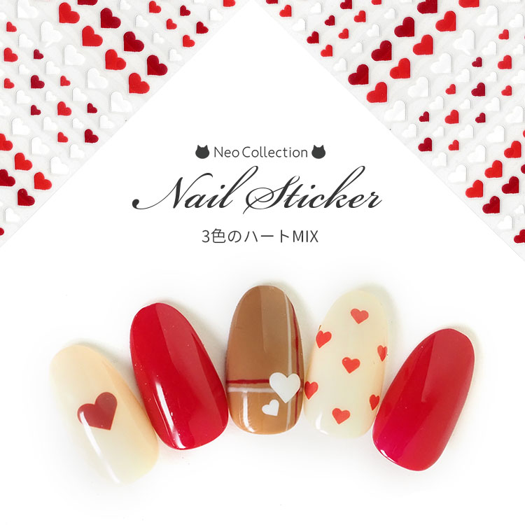 ネイルシール 3色のハートMIX バレンタイン ハート レッド ホワイト 小さめハート ドットネイル ネイルアート ネイルステッカー ネイルグッズ ジェルネイル