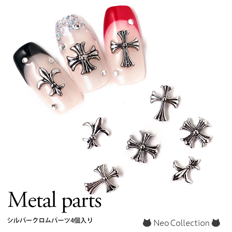 ネイルクロムパーツ 全3種 4個入り メタルパーツ シルバーパーツ ネイルパーツ クロムパーツ セルフネイル