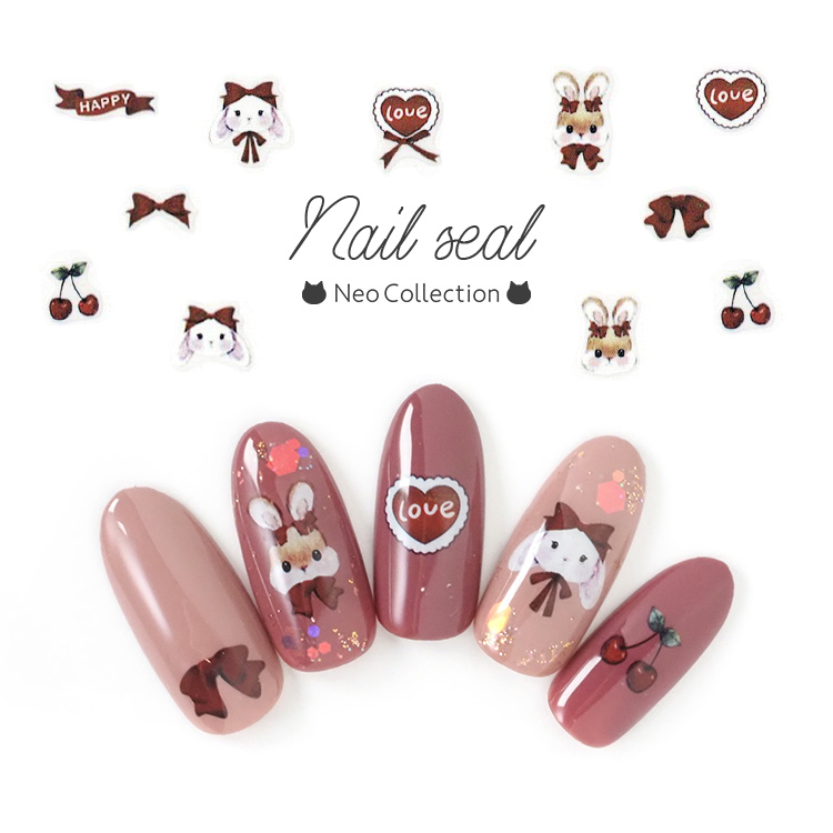 ネイルシール メルヘンうさぎ リボン ハート 兎 赤 【MS-C131】 うさぎ