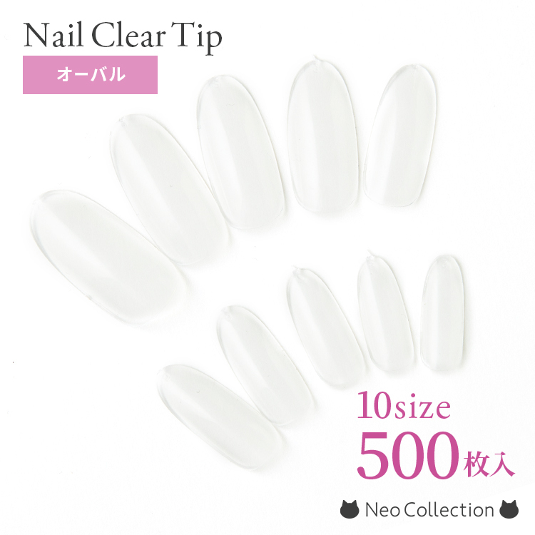 【オーバル】クリアネイルチップ 10サイズ500枚入 練習用やカラーチャートにも サンプル ジェルネイル ネイルアート セルフネイル 大容量 お徳用