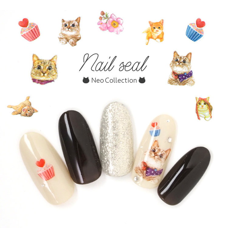 ネイルシール 猫 カップケーキ 【R029】 リボン キャット アニマル 可愛い