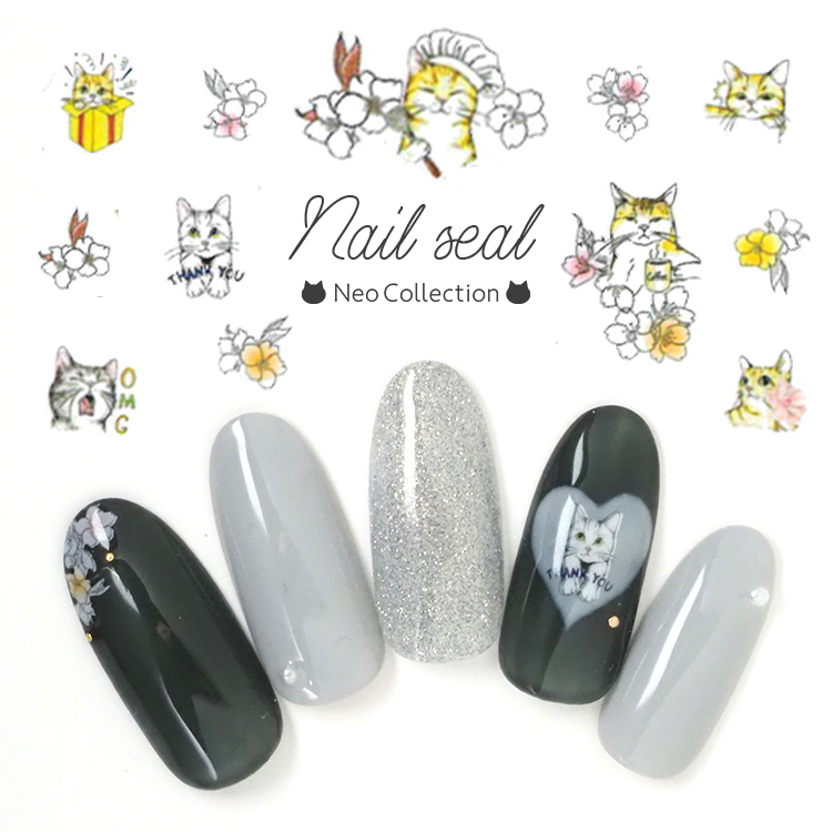 ネイルシール 猫 ふんわりキャット お花 【R031】 可愛い
